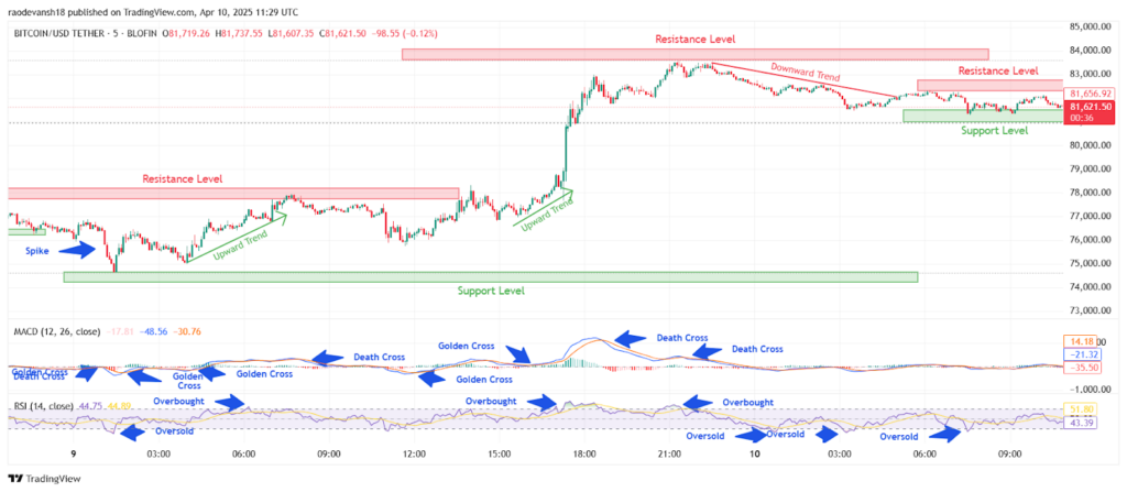 On April 8, Bitcoin saw significant upward momentum when a golden cross—a bullish technical indicator—formed, pushing the price from $78,290 to $82,990 within an hour. However, Bitcoin faced rejection at $83,650, leading to a slight downtrend with support holding steady at $81,530.