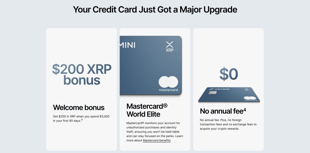 The new Gemini Credit Card edition allows customers to earn crypto rewards directly in XRP. Cardholders can earn: