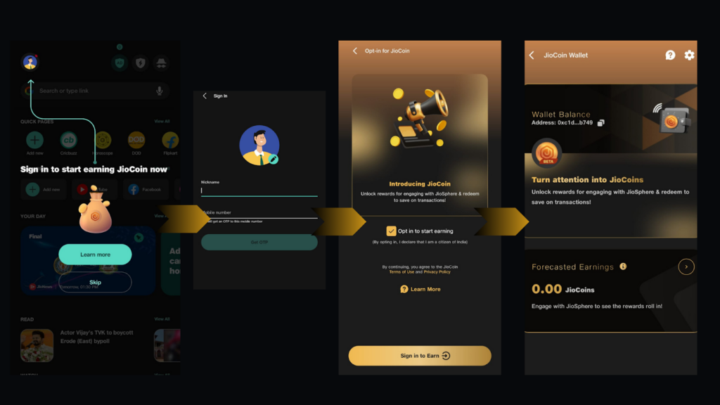 2. Sign Up: Register with your mobile number and create a JioCoin wallet.
