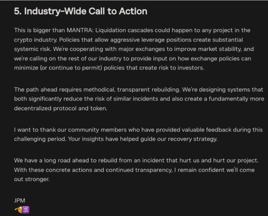 DeFi platform Mantra outlines governance reforms and calls for industry-wide collaboration to boost investor safety.