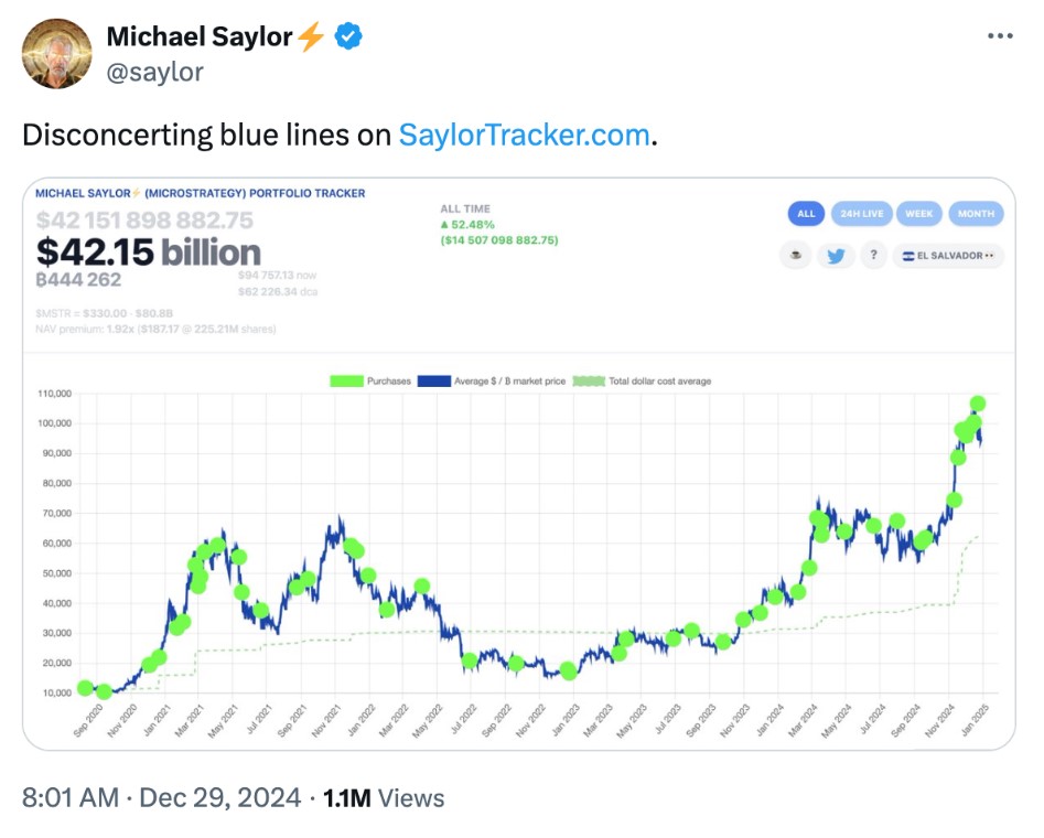 Michael Saylor, co-founder and executive chairman of MicroStrategy, teased the latest purchase on 29 December, hinting at the move via the Saylor Tracker, a platform that monitors the company’s Bitcoin transactions. Saylor has consistently expressed his unwavering belief in Bitcoin’s long-term value, stating that MicroStrategy will continue to buy the asset regardless of its price, even if it reaches $1 million per coin.