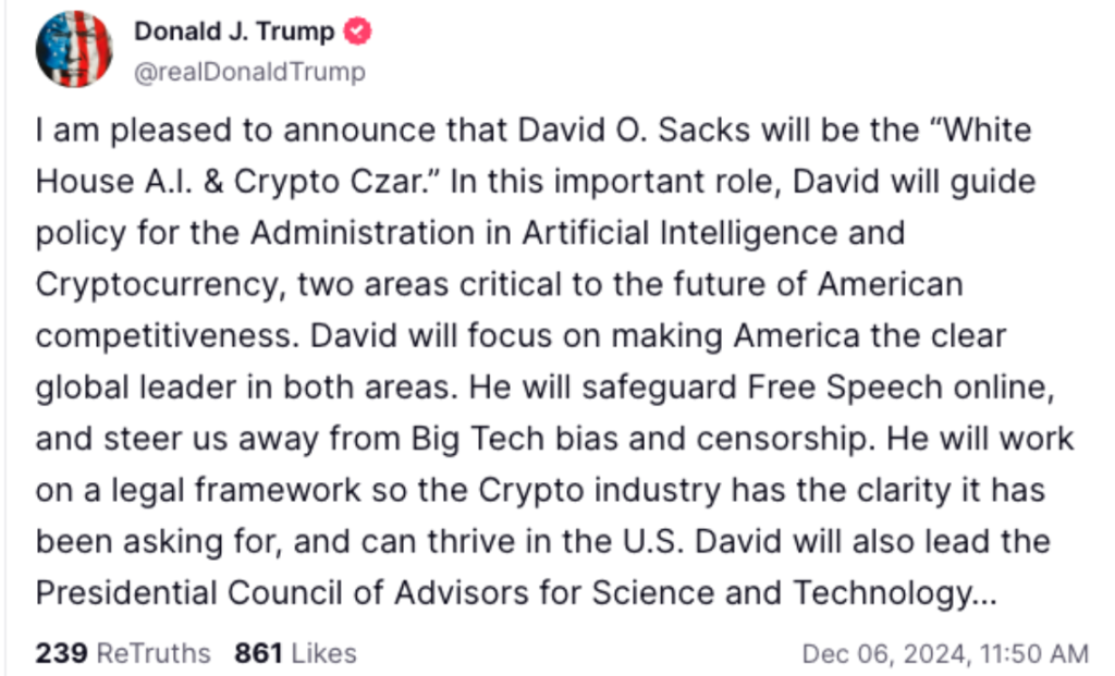 David Sacks has previously stated that stablecoins could help extend the US dollar’s global dominance, making their regulation a critical aspect of future policy discussions.